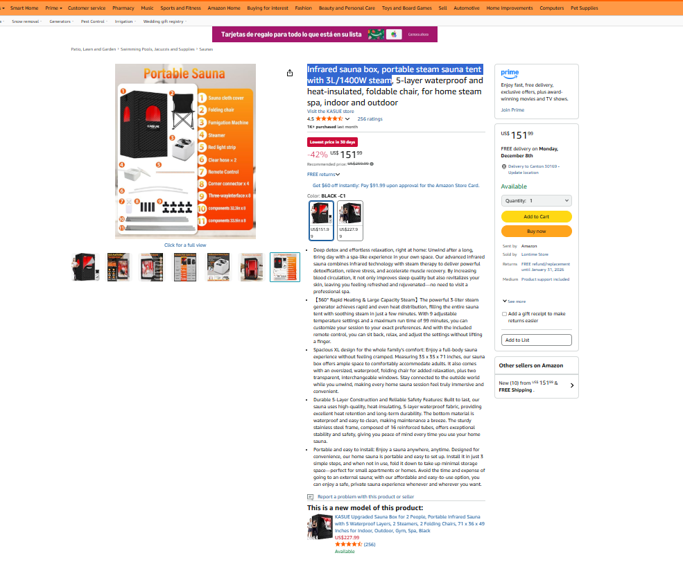 This dual-technology sauna tent combines intense 3L steam power with gentle infrared heat to deliver a full-body spa experience that rivals professional wellness centers.